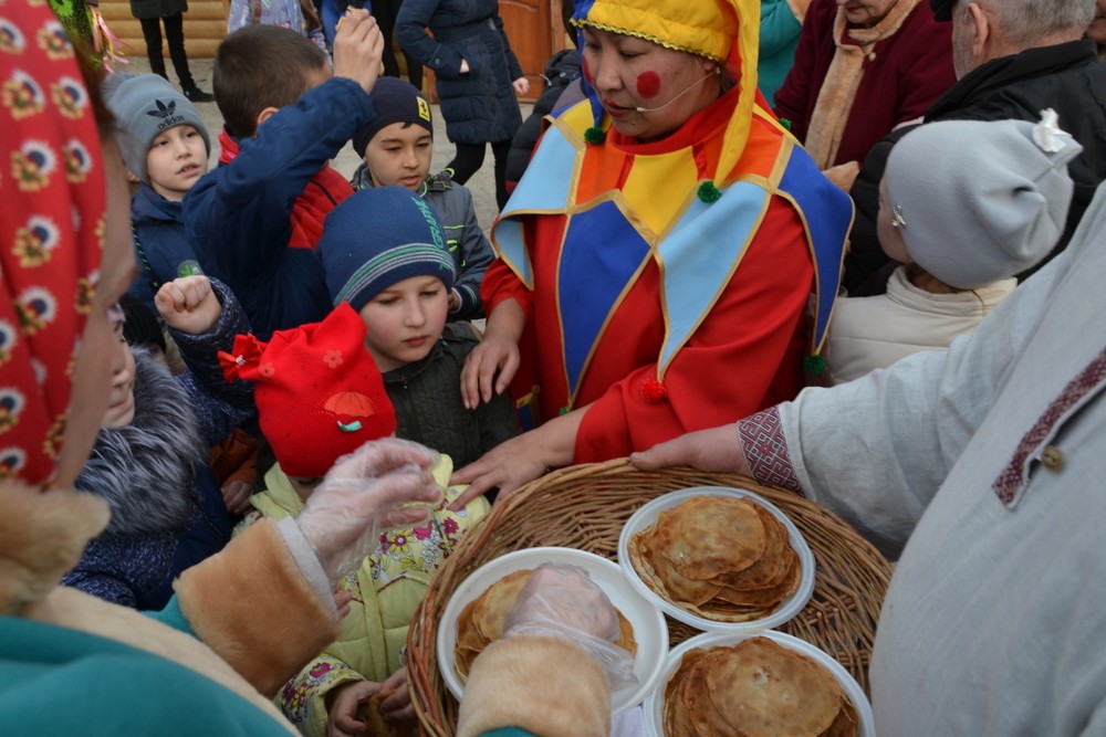 Для посетителей Ремесленного подворья приготовили вкусные блины с различными начинками. Дети пели частушки про Масленицу.