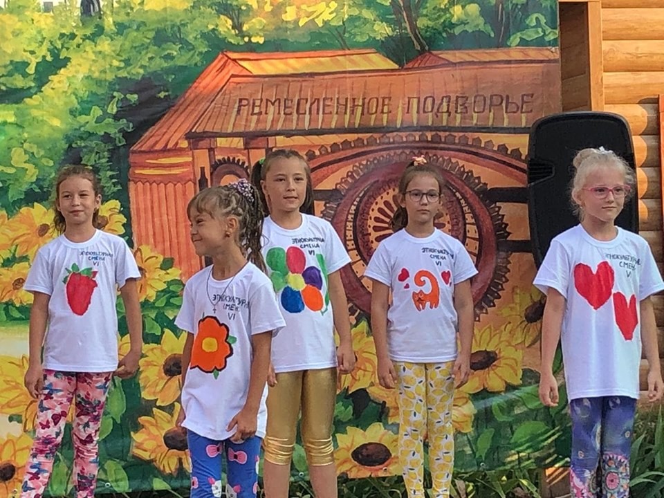 Участники VI этнокультурной смены показали два номера - песенный и танцевальный, которые подготовили в течение смены.