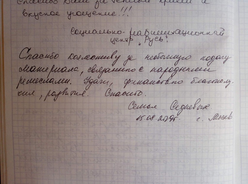 15 августа гостями туристического объекта "Ремесленное подворье" стала замечательная семья Седневых из г. Москвы. Папа, мама и двое сыновей путешествуют по стране. Ну, а как же обойти стороной то место, где чтят и сохраняют русские традиции? Гости с радостью пели частушки, подыгрывали на народных музыкальных инструментах солисткам ансамбля "Старинушка" и угощались ароматными блинами и чаем из дровяного самовара.