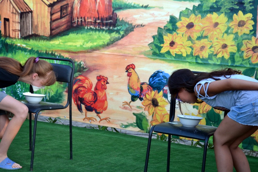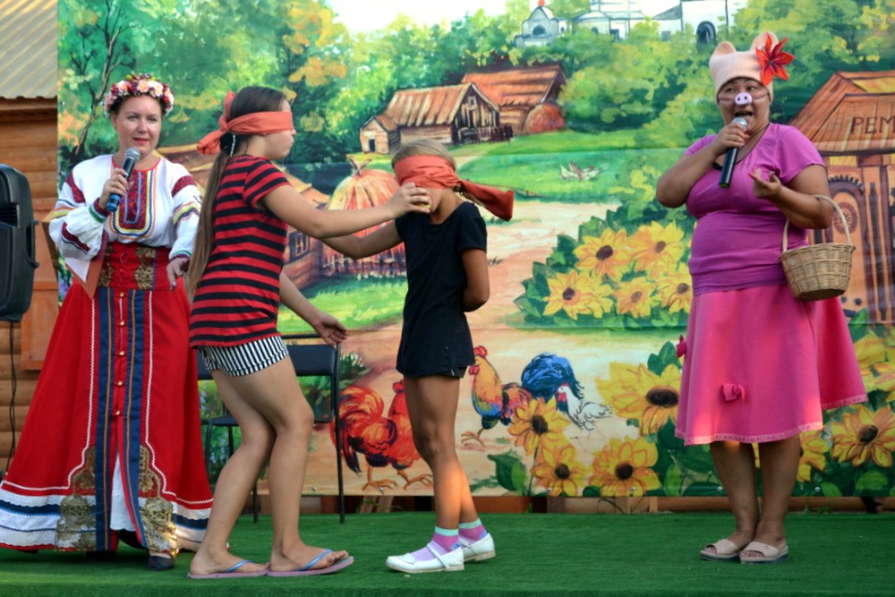 Артисты веселили зрителей, разыгрывали смешные сценки, пели частушки, загадывали ребятам загадки и проверяли их на ловкость в шуточных состязаниях.