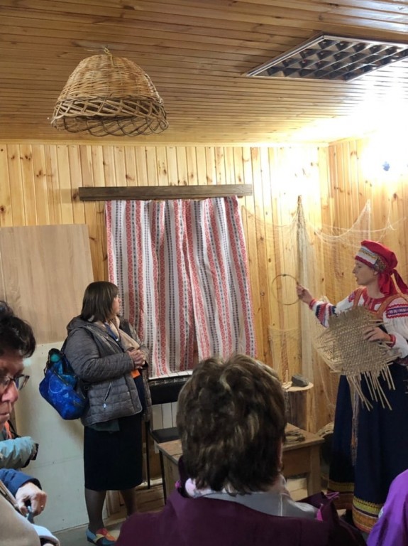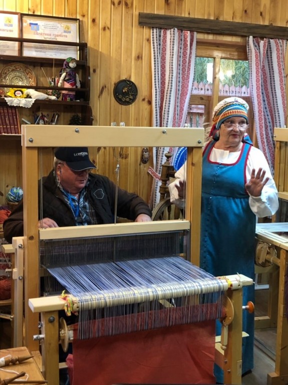 сначала смотрели, а потом пробовали ткать на современном и старинном двухсотлетнем