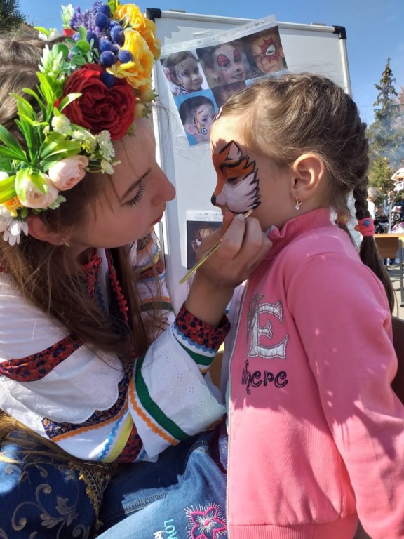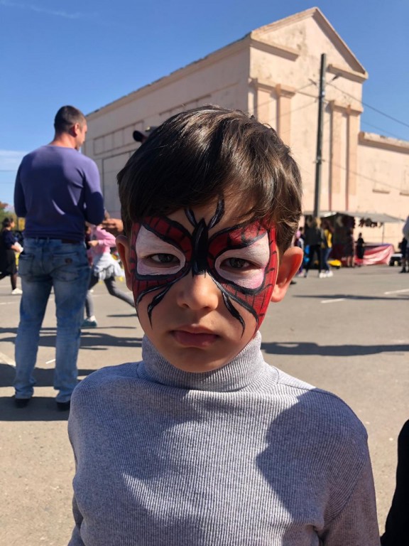 расписывал лица детей Аква гримом.