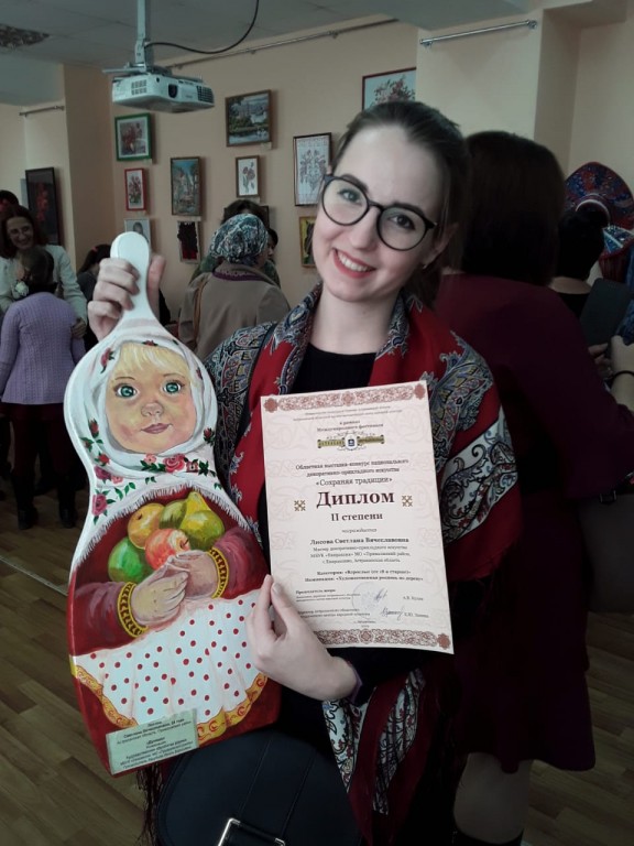 работой «Дуняша» в технике «Роспись по дереву» получила Диплом 2 степени.