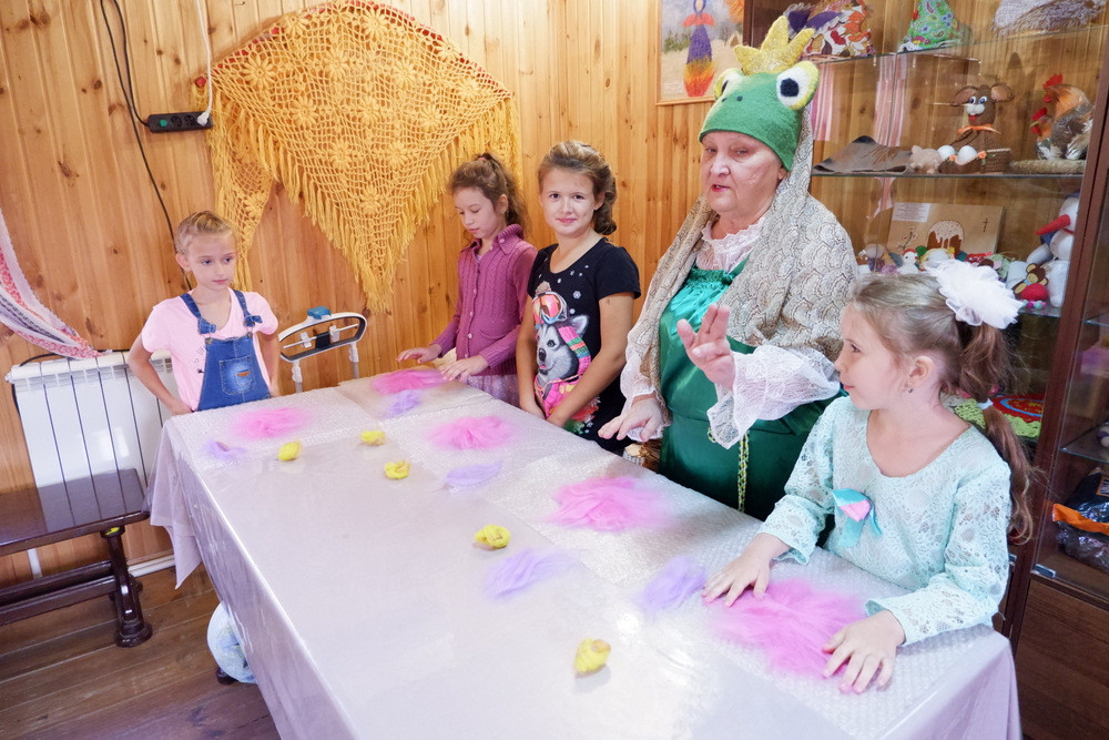 Девочек ждала в своей мастерской Царевна-Лягушка. Она