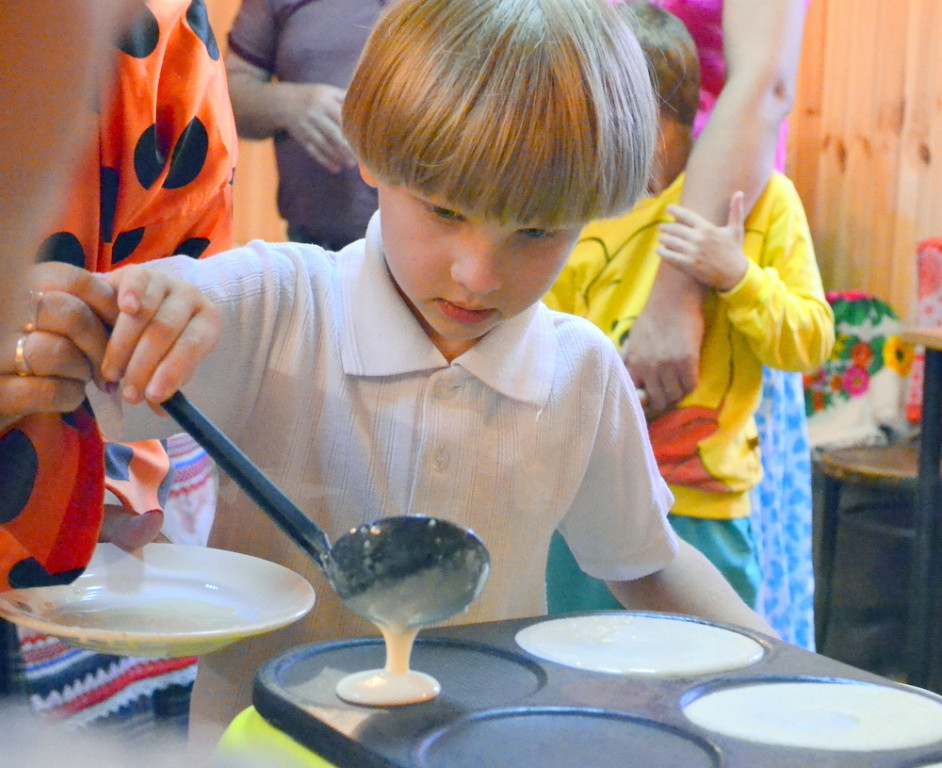 мастер-класс по приготовлению блинов. Вместе замесили тесто, и ребята попробовали