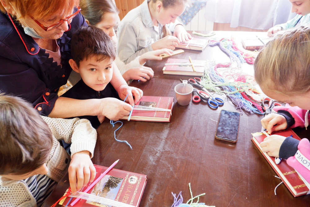 познакомились с ткачеством. Под руководством опытного мастера они соткали