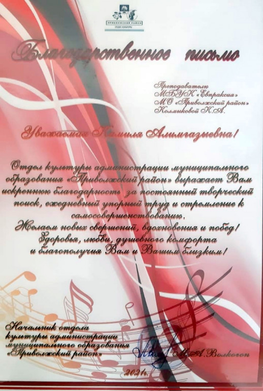 Благодарственным письмом от главы