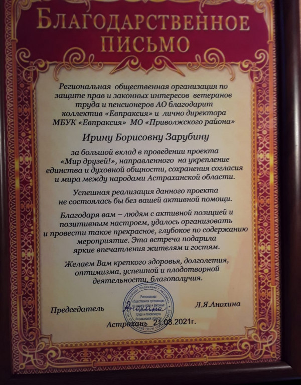 сотрудники МБУК «Евпраксия» МО «Приволжский район» были отмечены