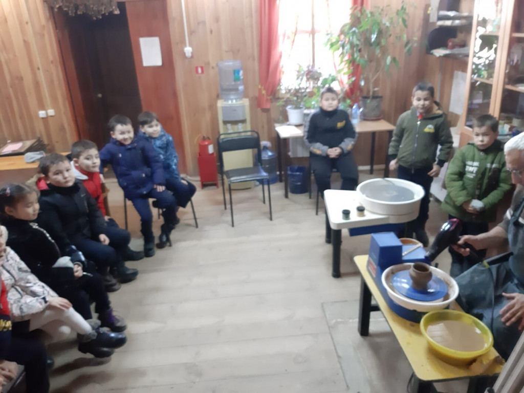 Мастер керамист показал школьникам, как на гончарном круге делают вазочки и кувшинчики.