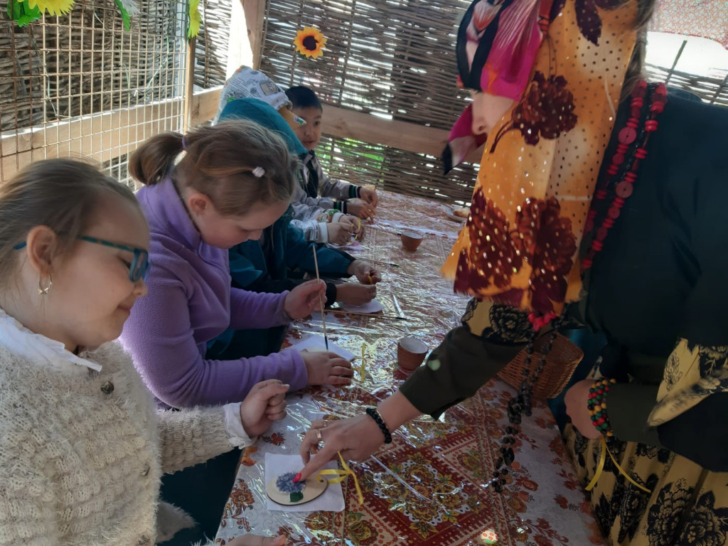 Пасхальные игры продолжаются на Ремесленном подворье в Евпраксино. 18 апреля к нам приехали школьники из Инженерной школы Астрахани.