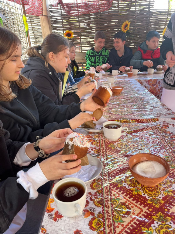 Астраханские школьники играли в старинные народные пасхальные игры с крашенными яйцами.