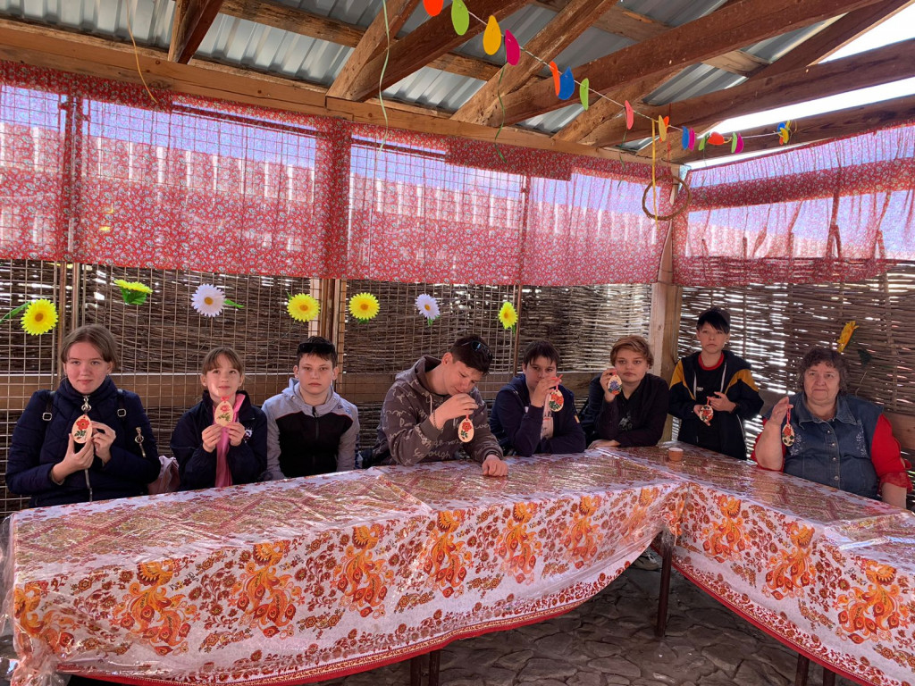 На мастер-классе ребята украшали деревянные заготовки в виде яиц в технике Декупаж.