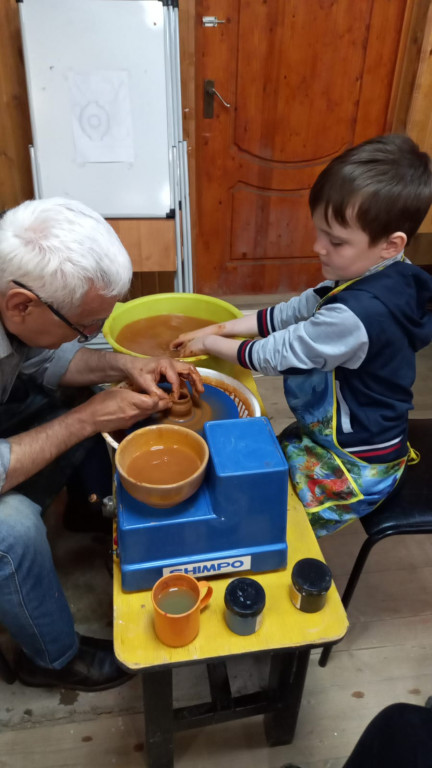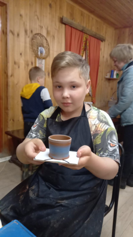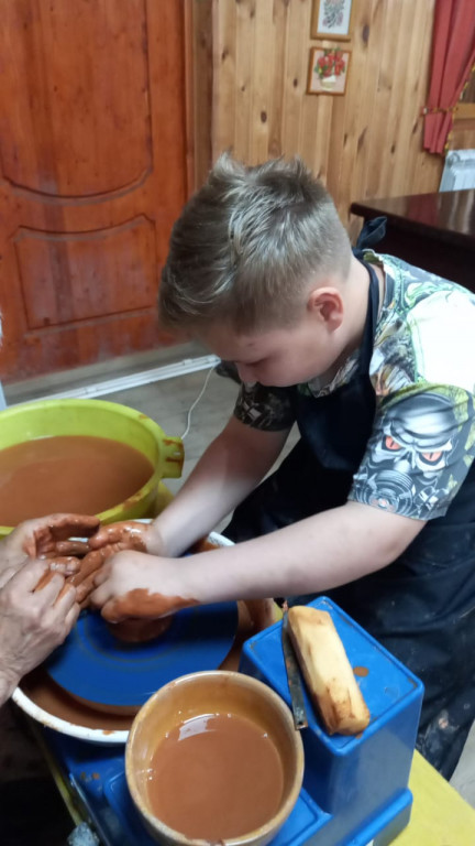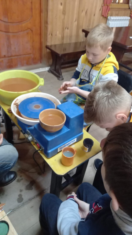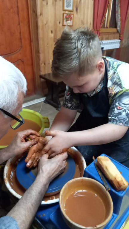В гончарной мастерской гостей ждал приятный сюрприз. Ребята не только посмотрели, как работает гончар, но и сами сделали небольшие изделия на гончарном круге.