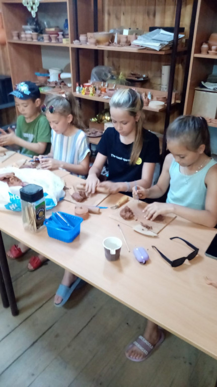 Мастерская Гончарный дворик работает все лето. 29 июня ребята пришли на занятие и творят.