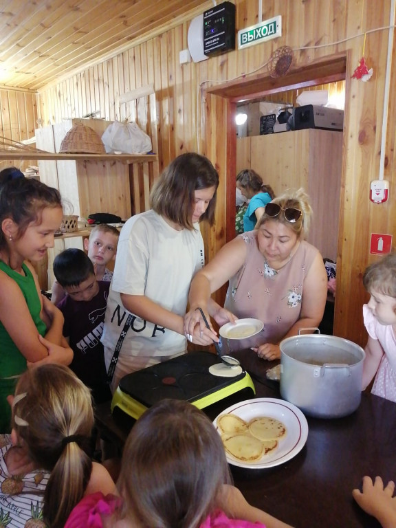 Первый день смены традиционно - день русской культуры. А это значит, что весь день мы говорили о русских традициях и обычаях, пели народные песни, играли на народных инструментах и в русские народные подвижные игры. Не обошли стороной мы и кулинарные традиции русского народа. На мастер-классе по выпечке блинов ребята не только вспомнили рецепты теста для блинов, но и сами его замесили, а затем выпекали блины.