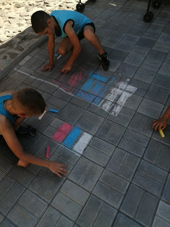конкурс рисунков на асфальте : " Люблю свою Родину".