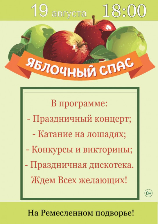 Приглашаем вас 19 августа в 18:00 на Ремесленное подворье весело отметить праздник Яблочный Спас!