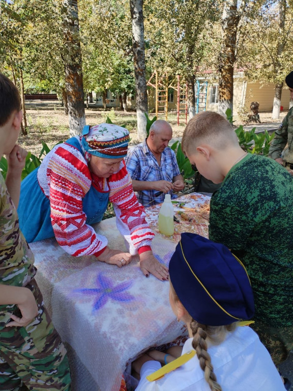 Мастера народных ремесел с туристического объекта в Евпраксино "Ремесленное подворье" приехали, чтобы показать ребятишкам некоторые приемы работы с различными материалами.