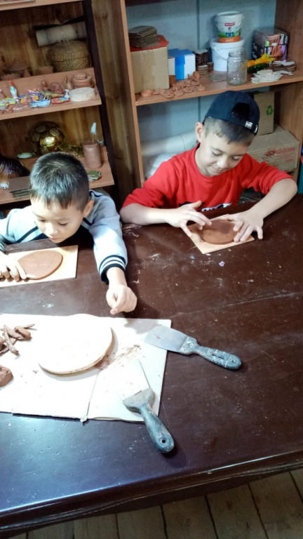 В мастерской "Гончарный дворик" 14 сентября лепили бабочку и уточку из глины в технике "оттиск".