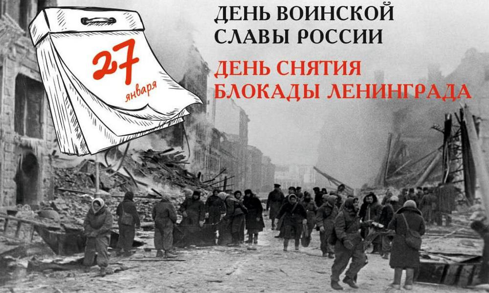 27 января 1944 г. в результате проведения Ленинградско-Новгородской стратегической наступательной операции были разгромлены немецко-фашистские войска под Ленинградом и окончательно снята 872-дневная блокада города. Блокада Ленинграда продолжалась с 8 сентября 1941 г. по 27 января 1944 г.