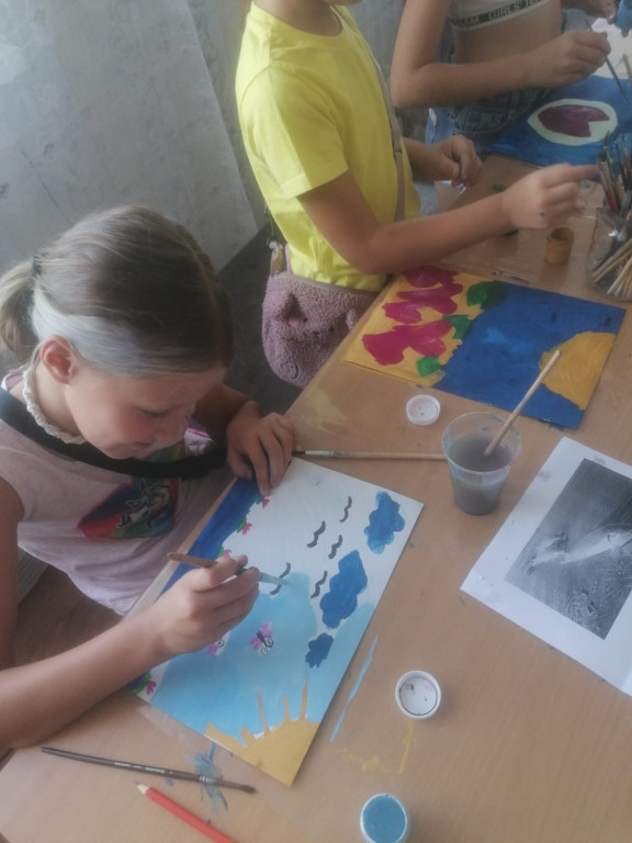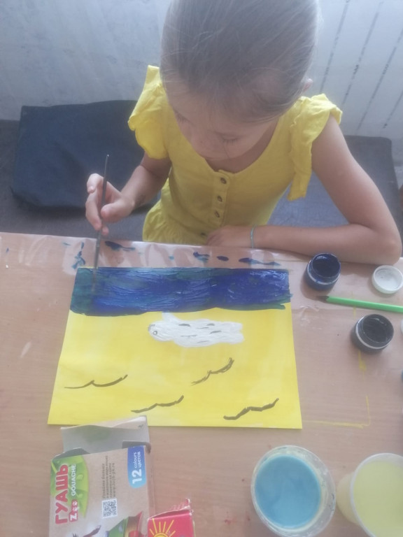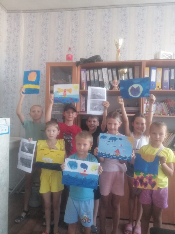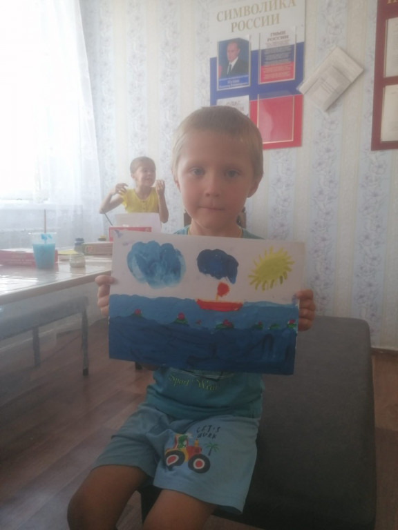 Дети нарисовали рисунки, на котором изобразили море и его обитателей.