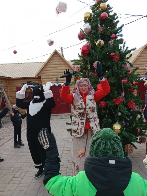 Казачат встречали сказочные персонажи: Кот Ученый, Леший, Гвидон и Царевна Лебедь. Затем все отправились в резиденцию Деда Мороза, где с большим удовольствием танцевали, пели и водили хороводы.