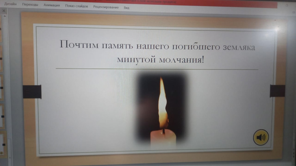 Беседа сопровождалась презентацией с краткой биографией о погибшем герое.
