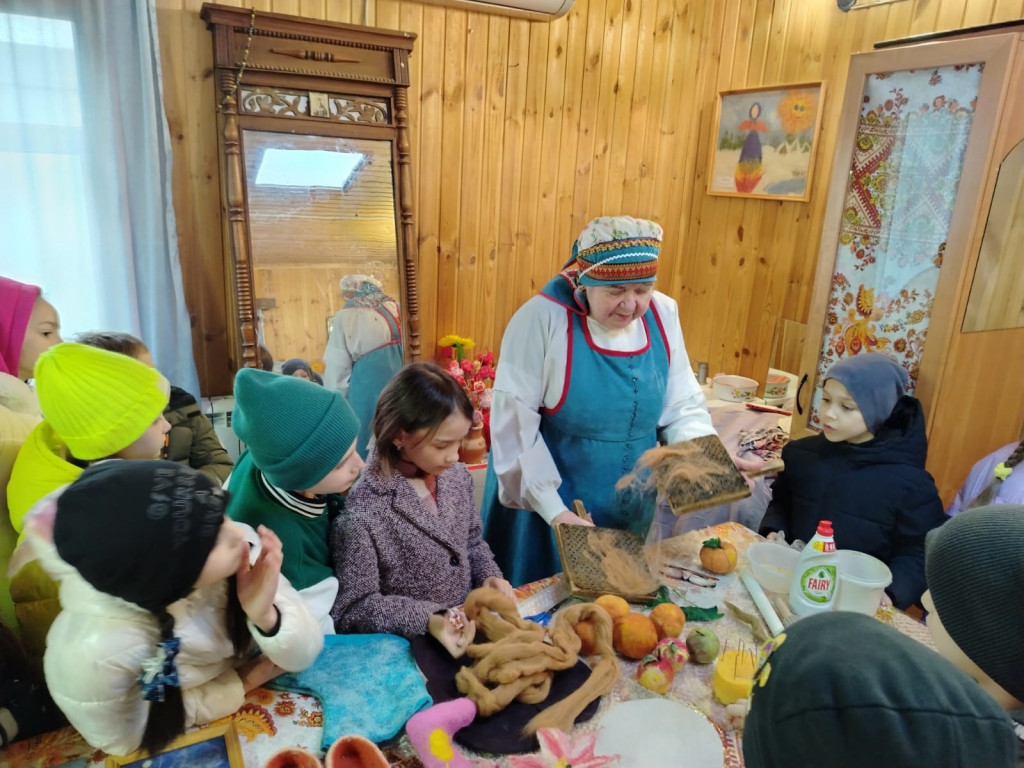 🌞 Ребята и родители посетили мастерские народных ремесел. Каждый смог поработать на ткацком станке, а в мастерской по валянию из шерсти узнали, чем отличается мокрое валяние от сухого. Также ребята посетили мастерскую по плетению из природного материала и гончарную мастерскую, где гончар показал мастер - шоу работы на гончарном круге.