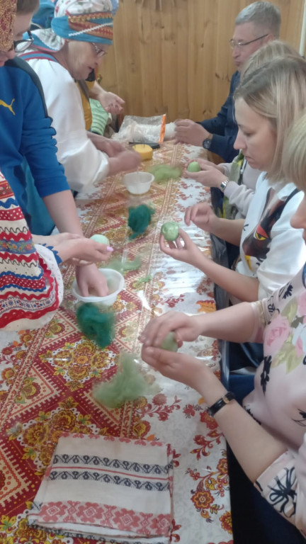 Знакомство с валянием стало ещё более глубоким. Для гостей был организован мастер-класс «Арбузик» — символ Астраханского края.