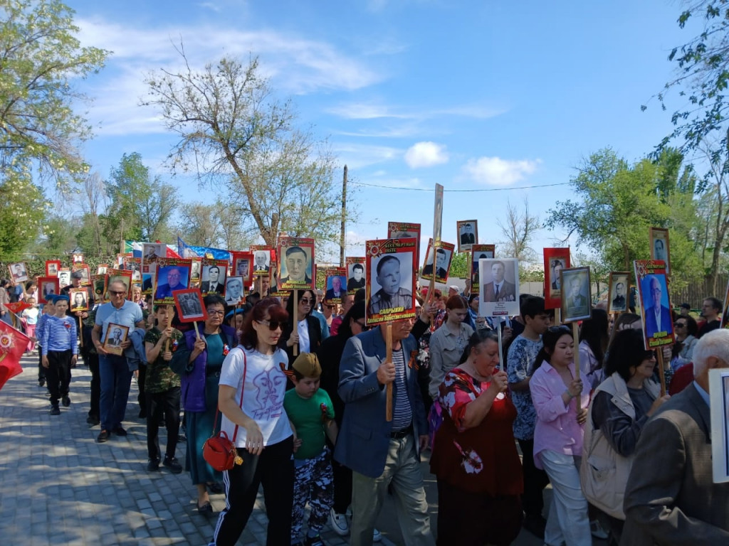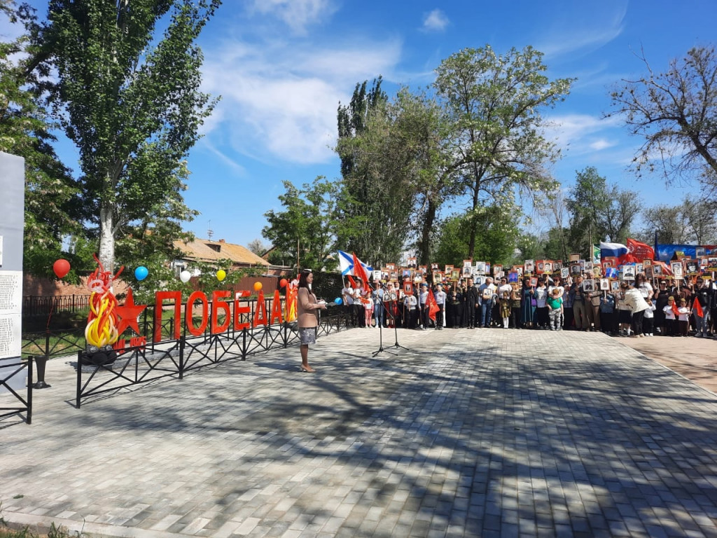 Торжественное шествие, организованное в форме парада, началось от центральной улицы села. Знаменная группа, с историческими флагами СССР и знаменами России, возглавила процессию. Следом за ней проследовали воспитанники Станичного Казачьего Общества "Водяновская", демонстрируя преемственность поколений и уважение к традициям. Завершающим элементом парада стал "Бессмертный полк", в котором приняли участие жители МО «Евпраксинского сельсовета», выражая таким образом свою сопричастность к героическим событиям прошлого.