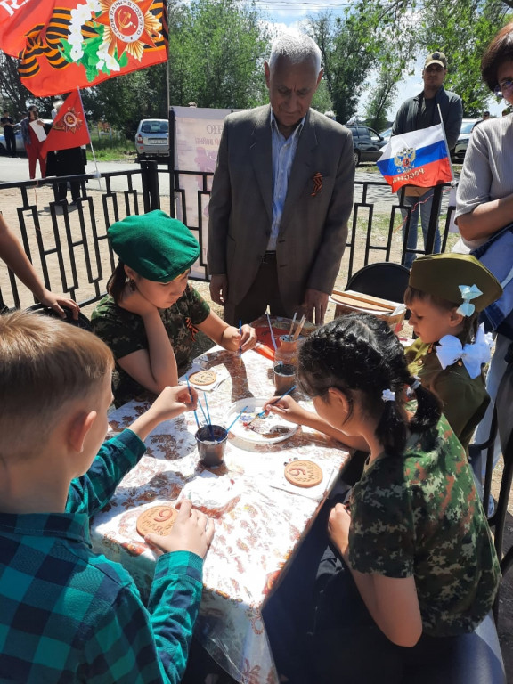 На территории парка была развернута интерактивная акция "Георгиевская ленточка", направленная на популяризацию государственных символов и памятных дат. Также работала детская площадка "Под мирным небом", где юные участники могли не только создать тематические сувениры, такие как солдатская пилотка или красная гвоздика, но и проявить творческие способности, раскрашивая глиняные медальоны.