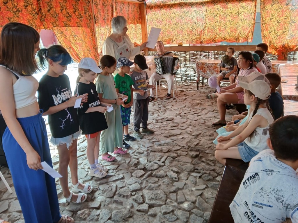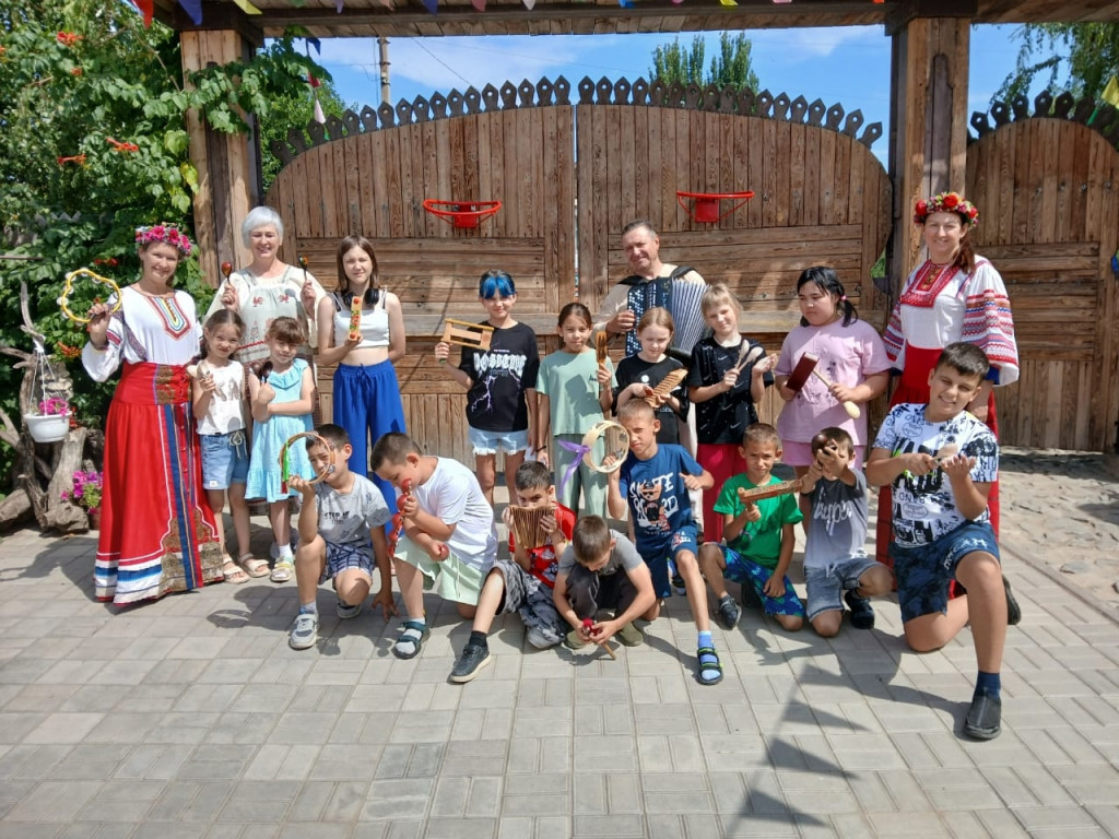 Вместе с сотрудниками МБУК «Евпраксия» ребята пели народные песни и играли на народных инструментах.