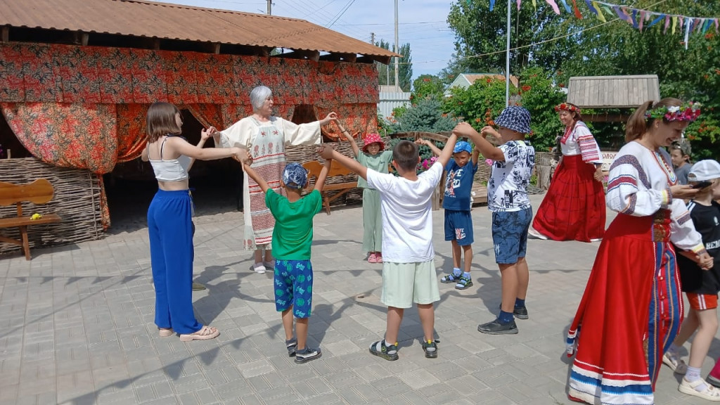 По традиции в первый день смены сотрудники районного учреждения «Евпраксия» подготовили для детей День русской культуры.