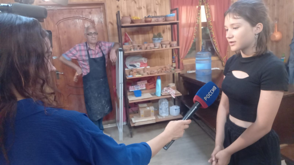 Сегодня по Ремесленное подворье приехали журналисты из ВГТРК «Лотос», чтобы снять репортаж об Этнокультурной смене.