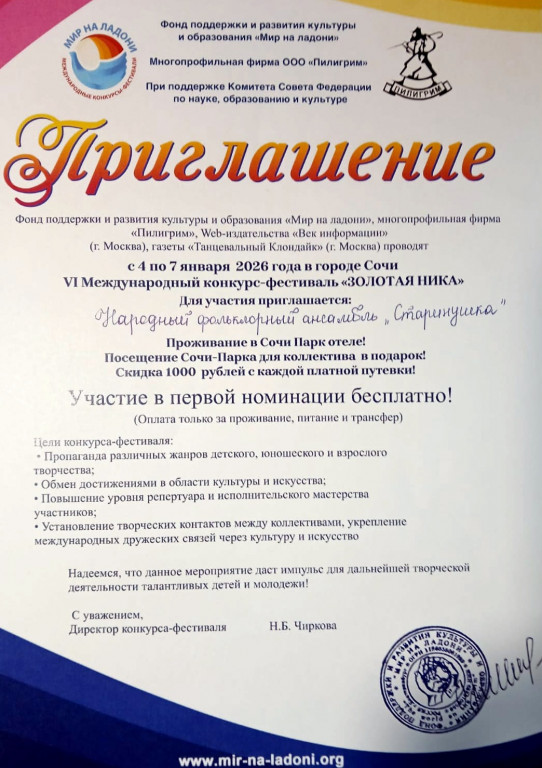 звание Лауреата 1 степени, и наградило именным приглашением на конкурс в Сочи и