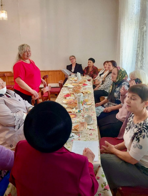 С самого начала атмосфера была наполнена радостью и теплом. Звучали душевные песни в исполнении талантливых участниц народного фольклорного ансамбля «Старинушка», которые тронули сердца каждого присутствующего. А столы, словно по волшебству, ломились от угощений и ароматного чая, создавая уютную и домашнюю обстановку.