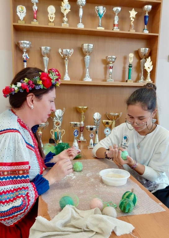 На мастер-классе по валянию из шерсти предлагалось сделать своими руками один из символов нашего города - арбуза. Это тяжелый и кропотливый труд, но как по итогу радует результат.