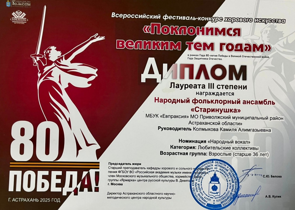 Поздравляем «Старинушку» с этой заслуженной наградой и желаем дальнейших творческих успехов!